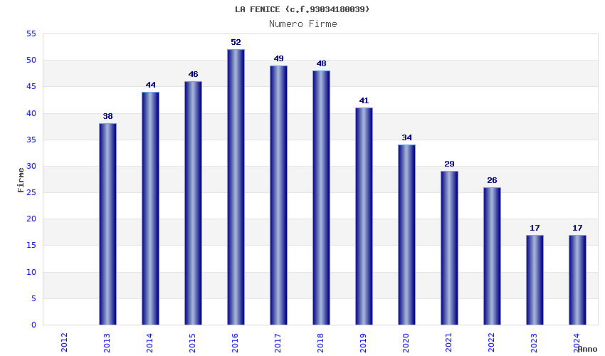 | Anno | Firme | Importi | Media | Naz. | Reg. | Prov. | Comu. |