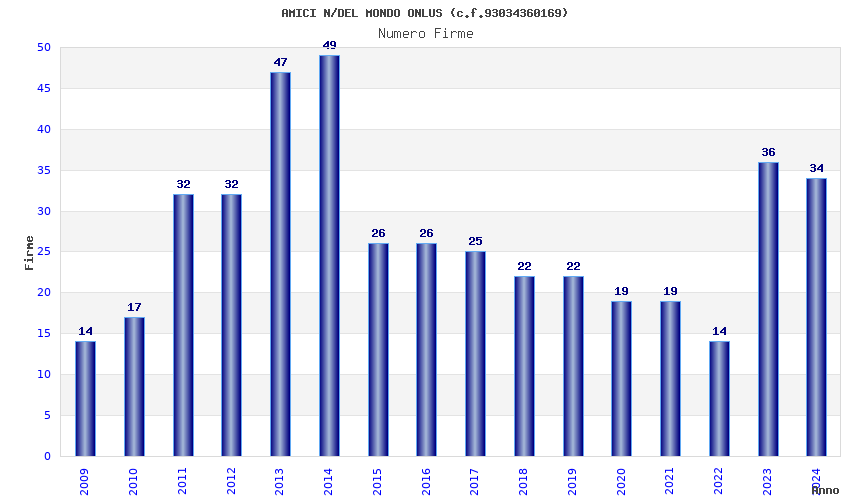| Anno | Firme | Importi | Media | Naz. | Reg. | Prov. | Comu. |