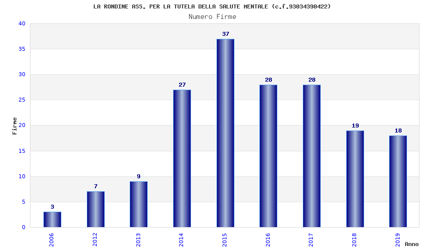 | Anno | Firme | Importi | Media | Naz. | Reg. | Prov. | Comu. |