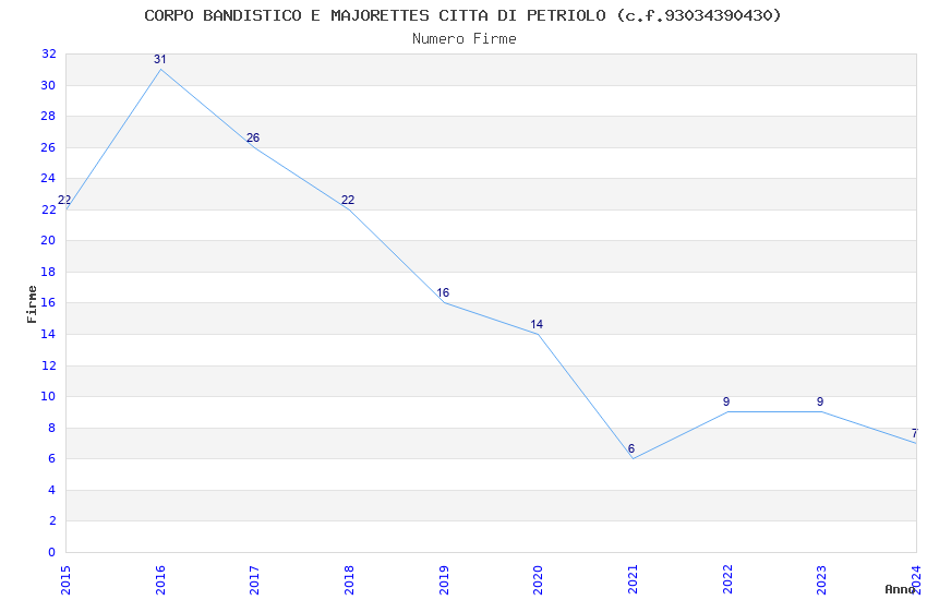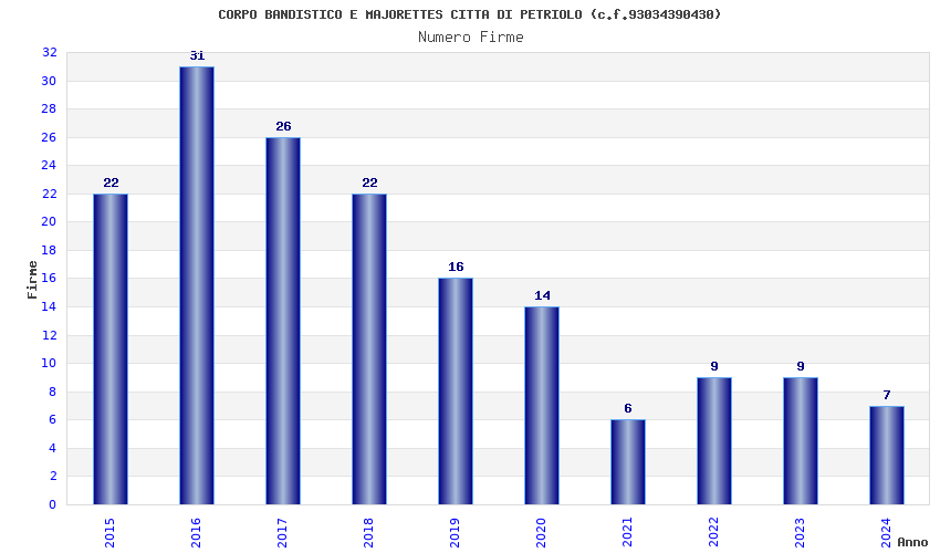 | Anno | Firme | Importi | Media | Naz. | Reg. | Prov. | Comu. |