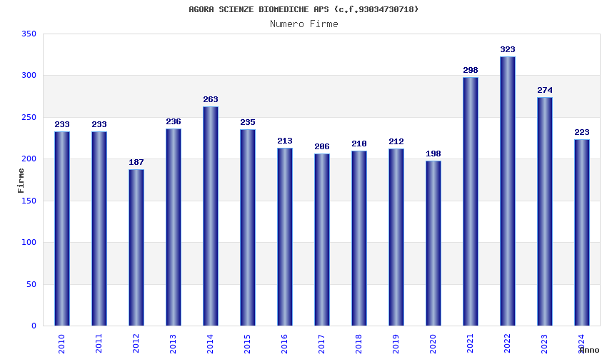 | Anno | Firme | Importi | Media | Naz. | Reg. | Prov. | Comu. |
