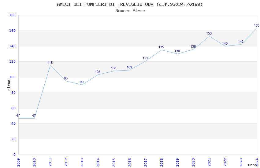 | Anno | Firme | Importi | Media | Naz. | Reg. | Prov. | Comu. |