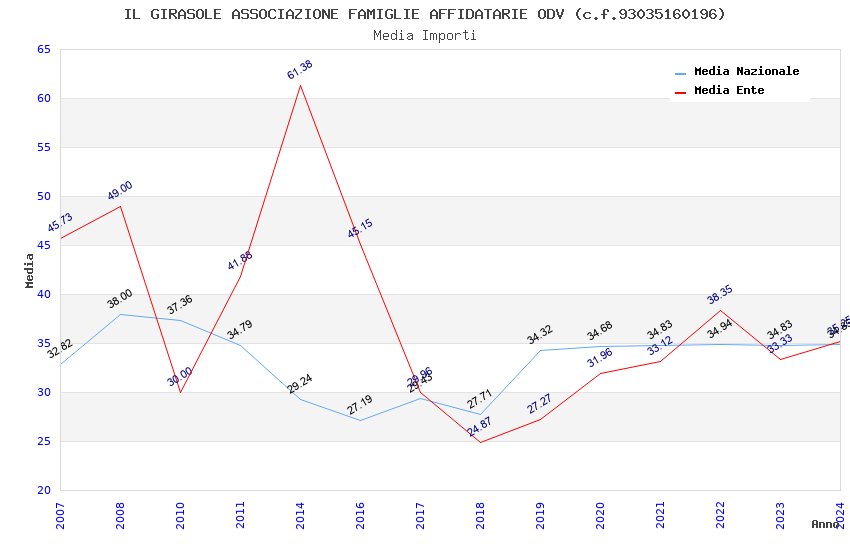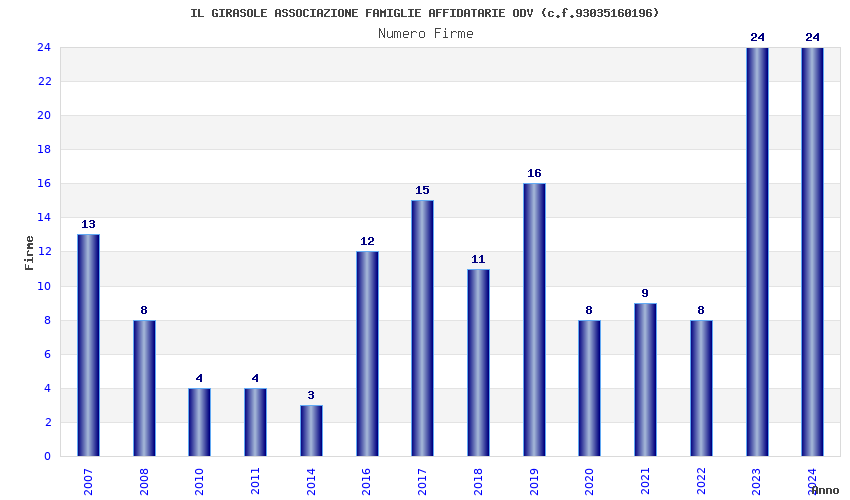 | Anno | Firme | Importi | Media | Naz. | Reg. | Prov. | Comu. |