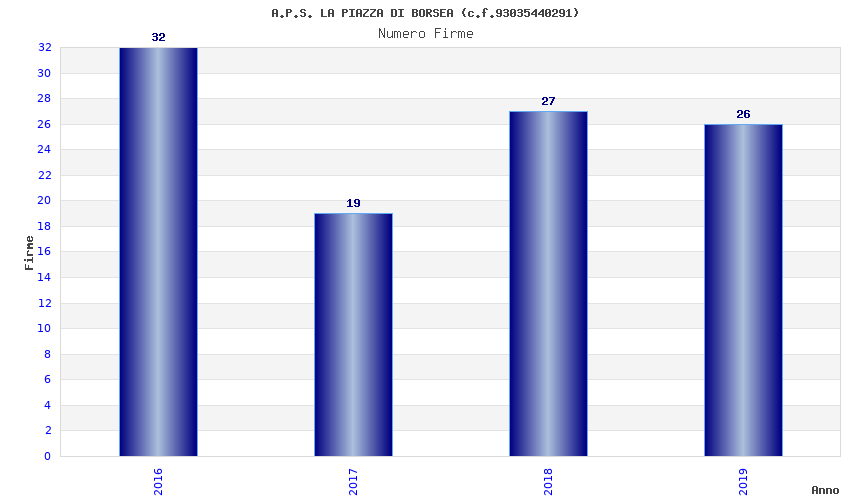 | Anno | Firme | Importi | Media | Naz. | Reg. | Prov. | Comu. |