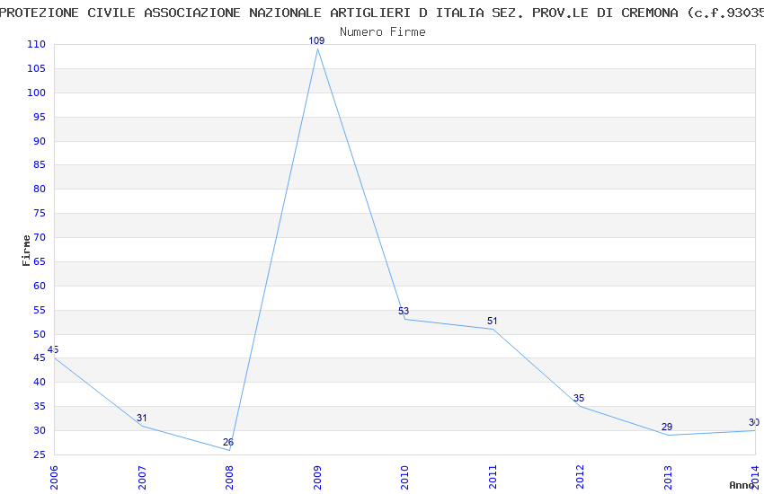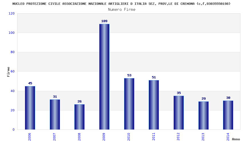 | Anno | Firme | Importi | Media | Naz. | Reg. | Prov. | Comu. |