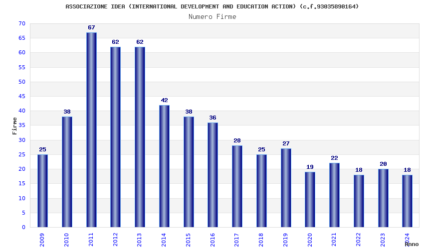 | Anno | Firme | Importi | Media | Naz. | Reg. | Prov. | Comu. |