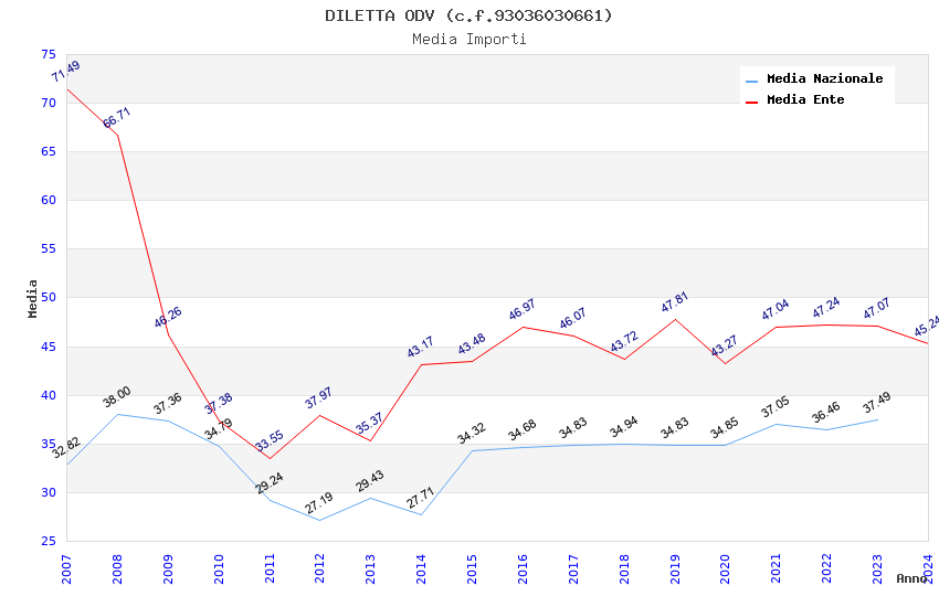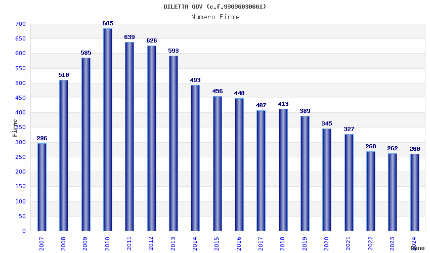 | Anno | Firme | Importi | Media | Naz. | Reg. | Prov. | Comu. |