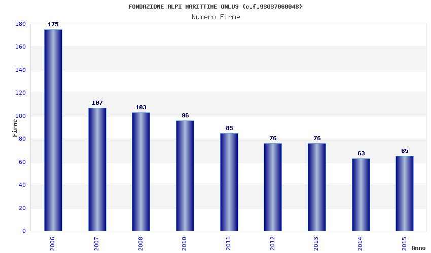 | Anno | Firme | Importi | Media | Naz. | Reg. | Prov. | Comu. |