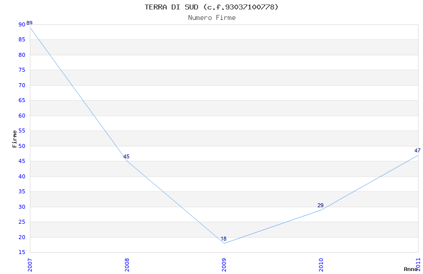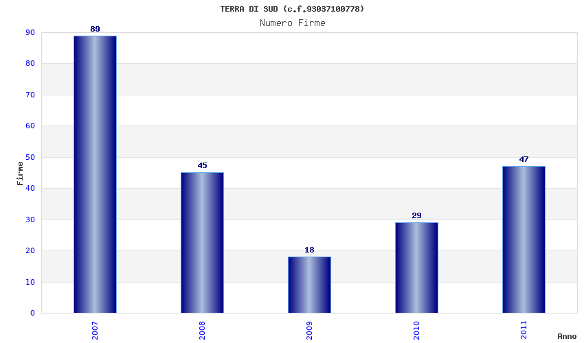| Anno | Firme | Importi | Media | Naz. | Reg. | Prov. | Comu. |