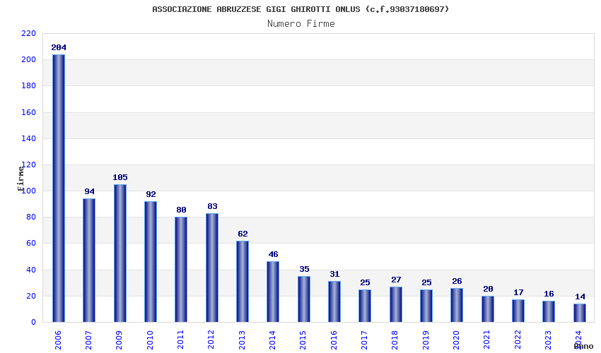 | Anno | Firme | Importi | Media | Naz. | Reg. | Prov. | Comu. |