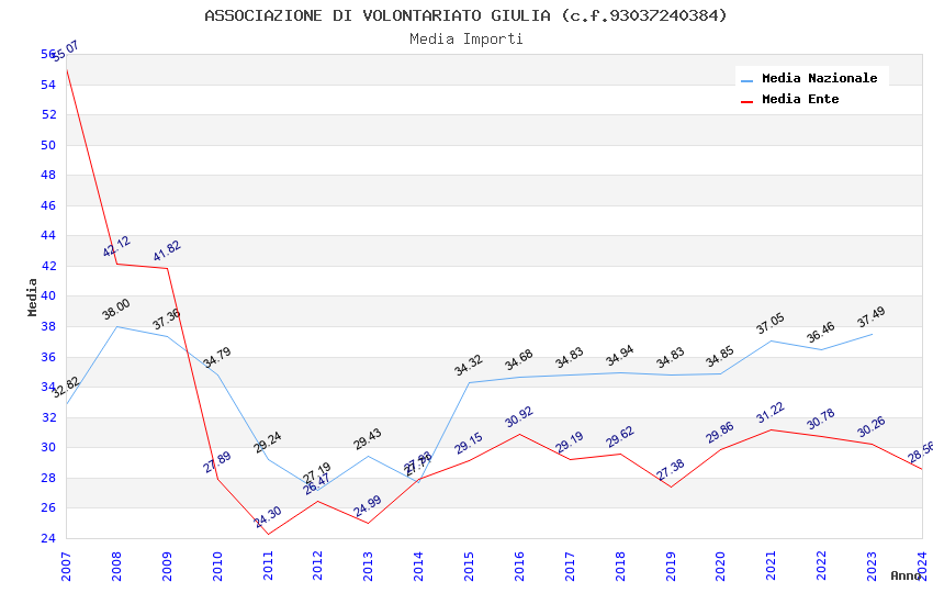 | Anno | Firme | Importi | Media | Naz. | Reg. | Prov. | Comu. |