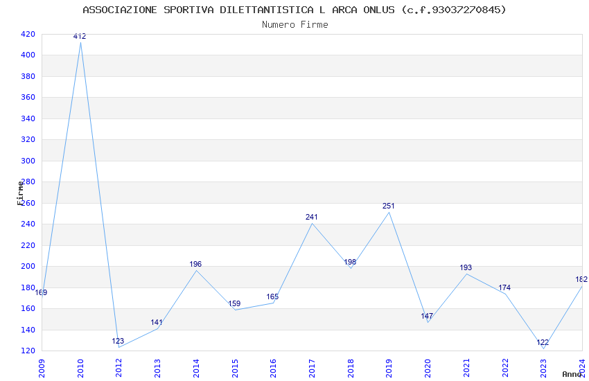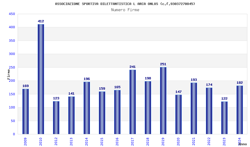 | Anno | Firme | Importi | Media | Naz. | Reg. | Prov. | Comu. |