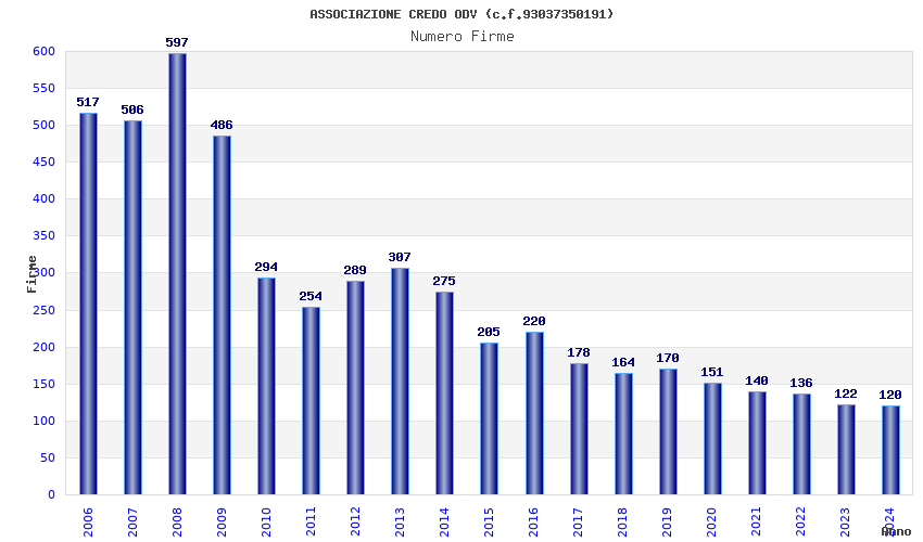 | Anno | Firme | Importi | Media | Naz. | Reg. | Prov. | Comu. |