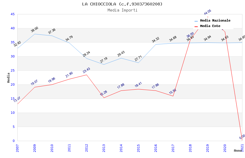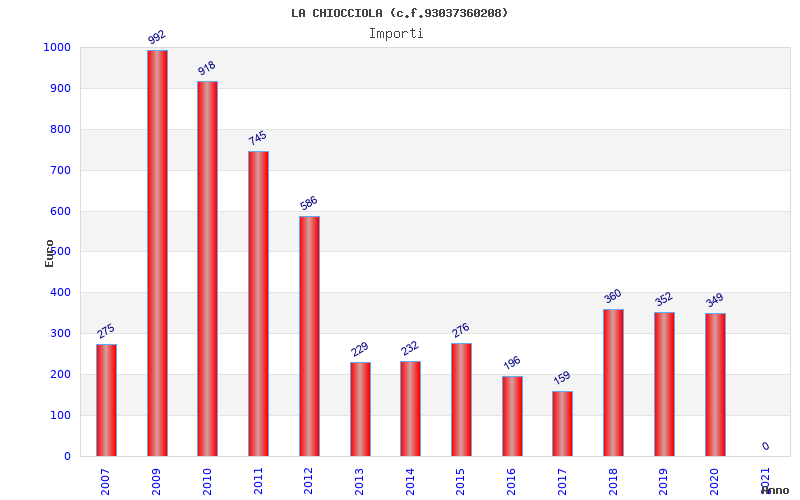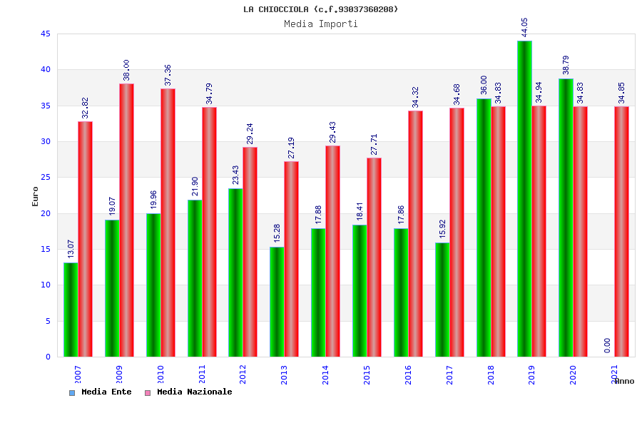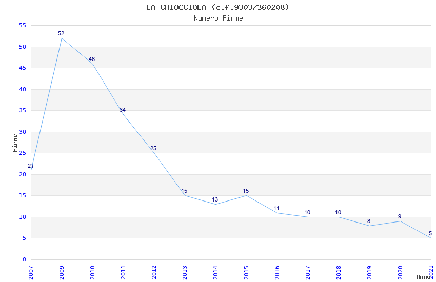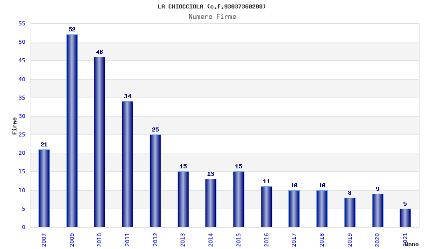| Anno | Firme | Importi | Media | Naz. | Reg. | Prov. | Comu. |