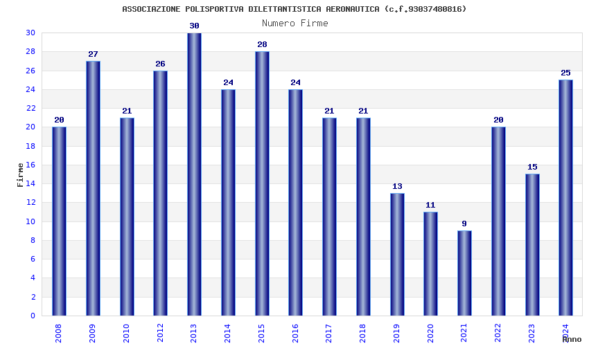 | Anno | Firme | Importi | Media | Naz. | Reg. | Prov. | Comu. |
