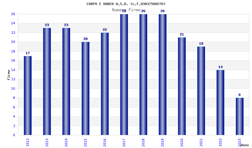 | Anno | Firme | Importi | Media | Naz. | Reg. | Prov. | Comu. |