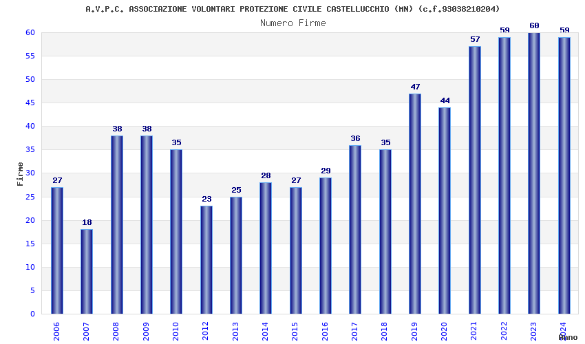 | Anno | Firme | Importi | Media | Naz. | Reg. | Prov. | Comu. |