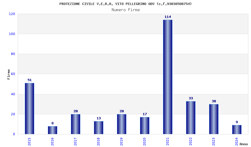 | Anno | Firme | Importi | Media | Naz. | Reg. | Prov. | Comu. |