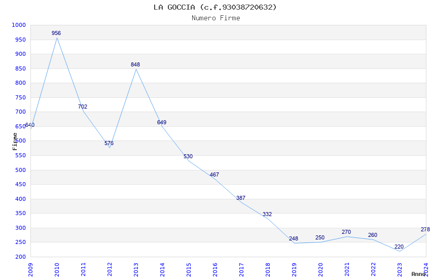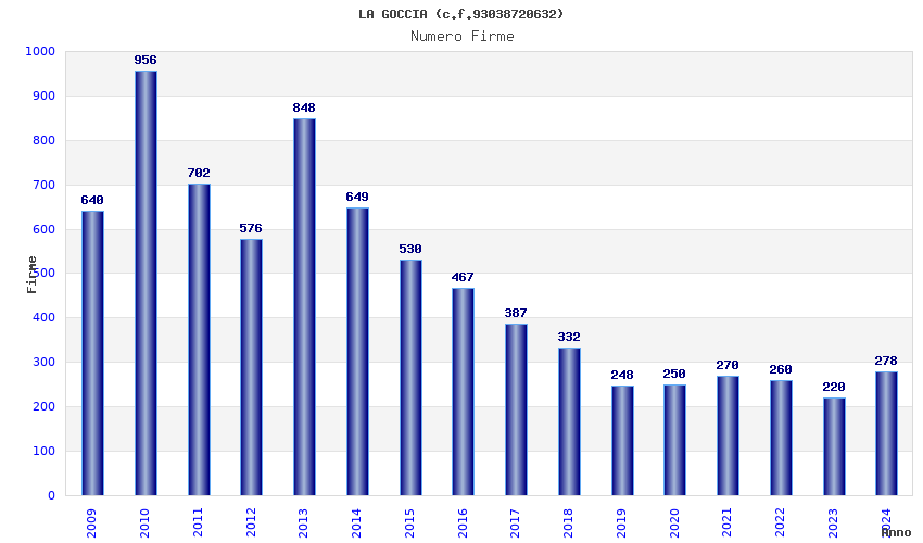 | Anno | Firme | Importi | Media | Naz. | Reg. | Prov. | Comu. |