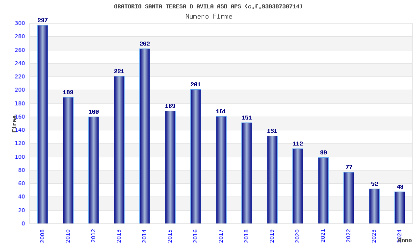 | Anno | Firme | Importi | Media | Naz. | Reg. | Prov. | Comu. |