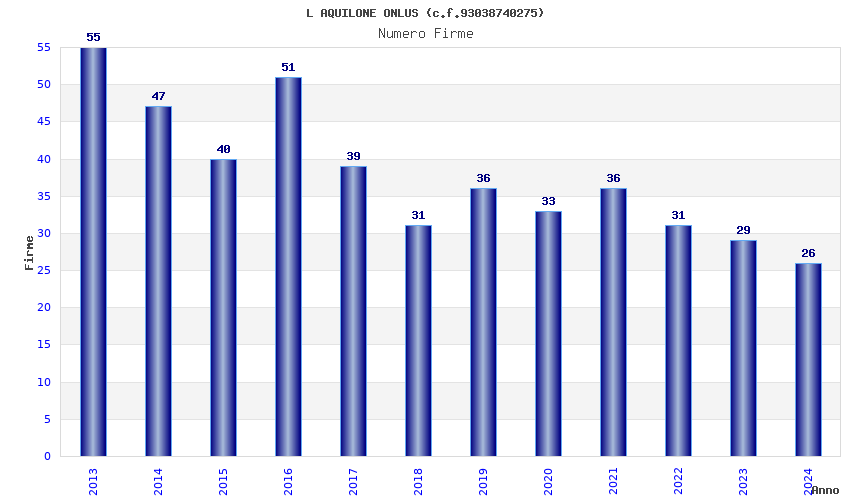| Anno | Firme | Importi | Media | Naz. | Reg. | Prov. | Comu. |