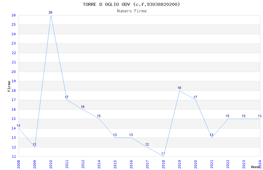 | 2014 | 15 | 303,48 | 20,23 | 42.847 | 8.895 | 413 | 11 |