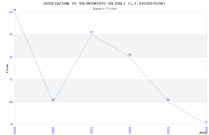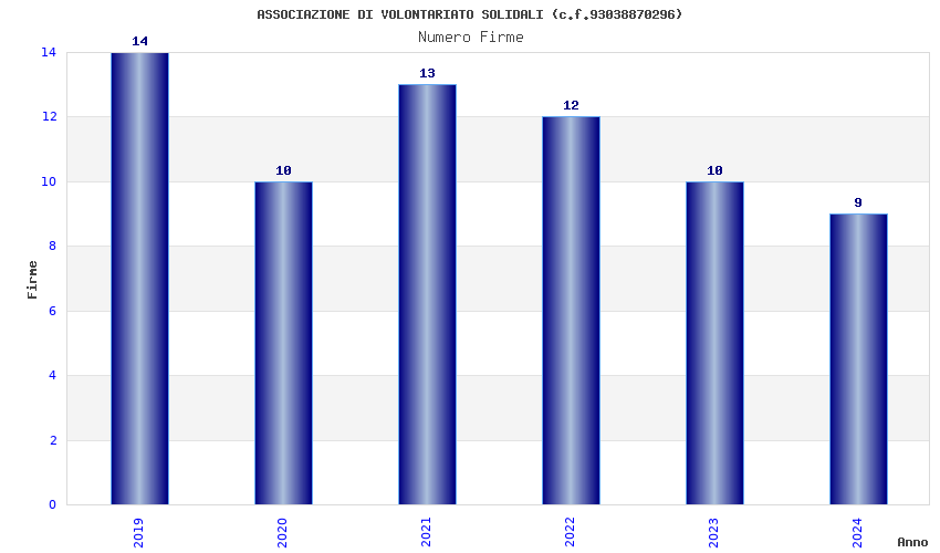 | Anno | Firme | Importi | Media | Naz. | Reg. | Prov. | Comu. |