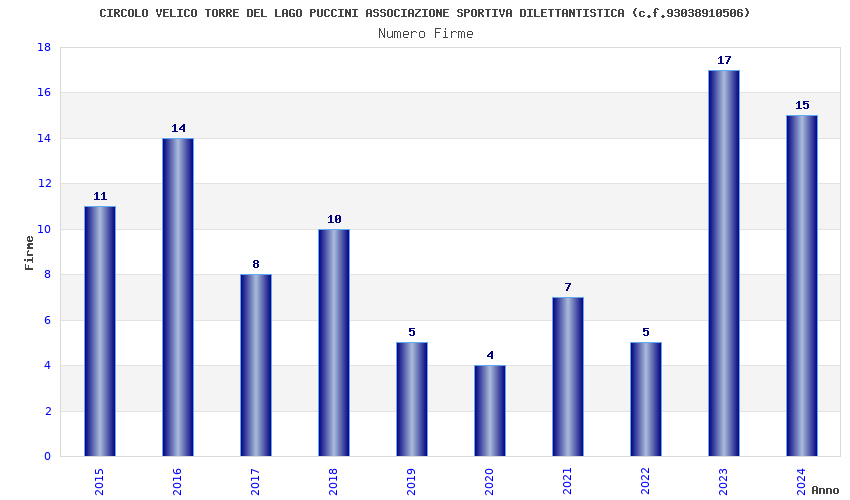 | Anno | Firme | Importi | Media | Naz. | Reg. | Prov. | Comu. |