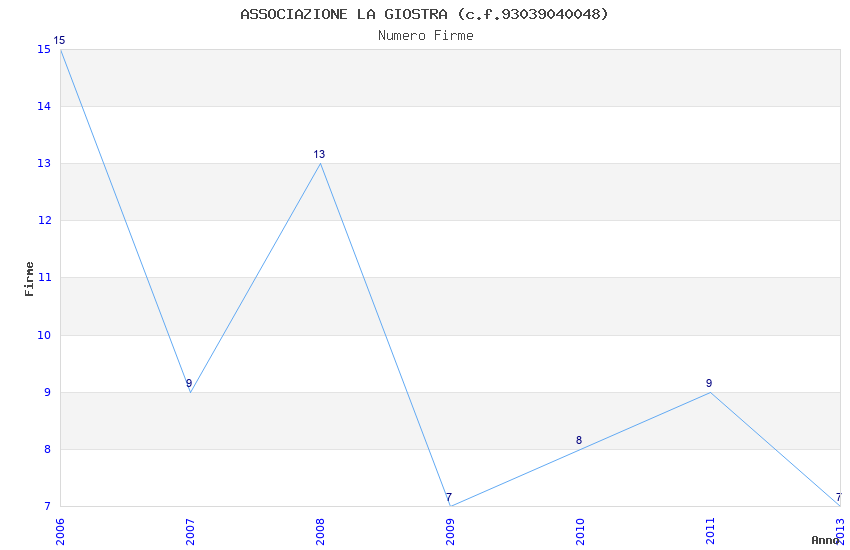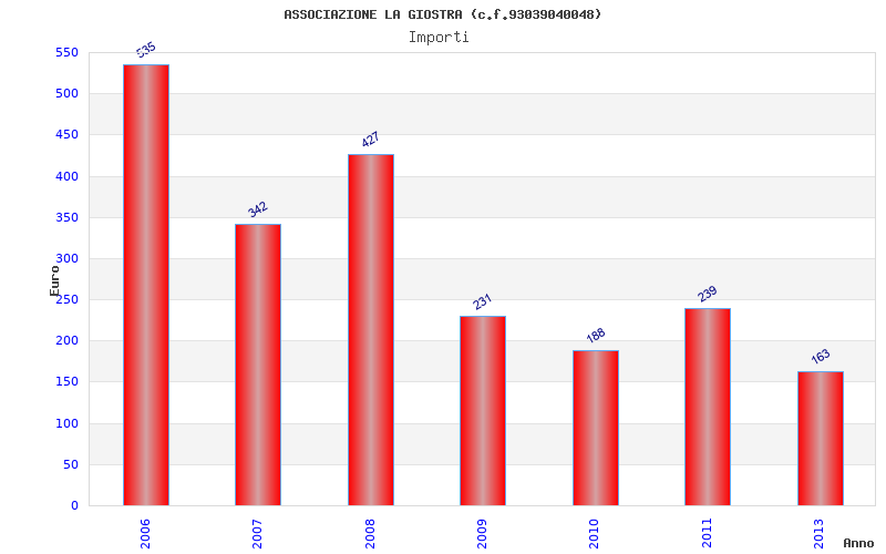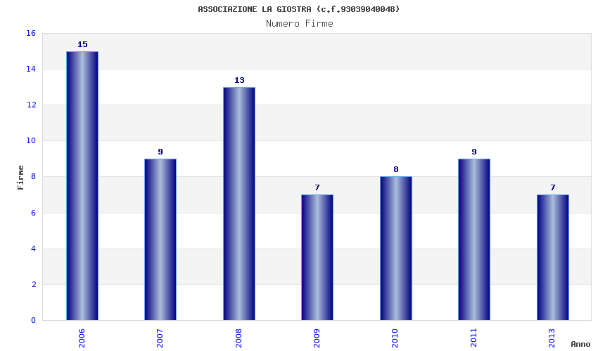 | Anno | Firme | Importi | Media | Naz. | Reg. | Prov. | Comu. |
