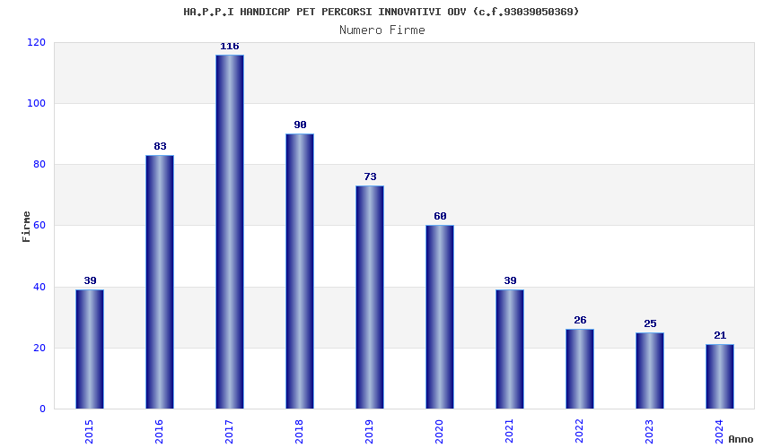 | Anno | Firme | Importi | Media | Naz. | Reg. | Prov. | Comu. |