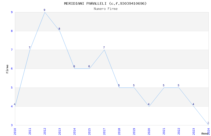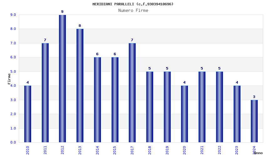 | Anno | Firme | Importi | Media | Naz. | Reg. | Prov. | Comu. |