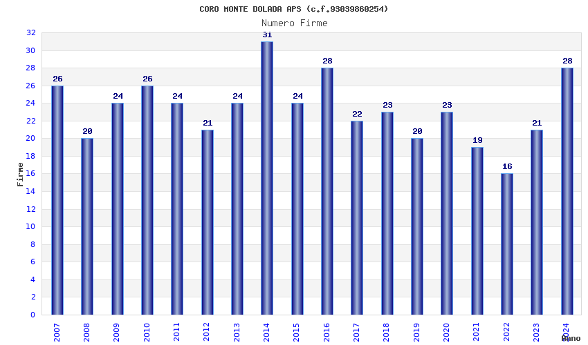 | 2014 | 31 | 598,75 | 19,31 | 36.920 | 3.436 | 218 | 5 |
