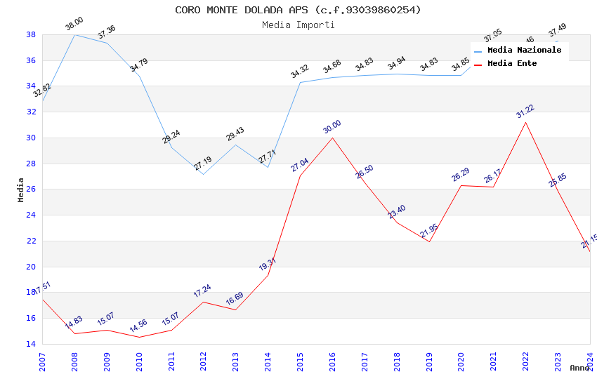 | Anno | Firme | Importi | Media | Naz. | Reg. | Prov. | Comu. |