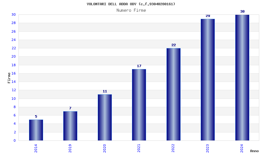 | Anno | Firme | Importi | Media | Naz. | Reg. | Prov. | Comu. |