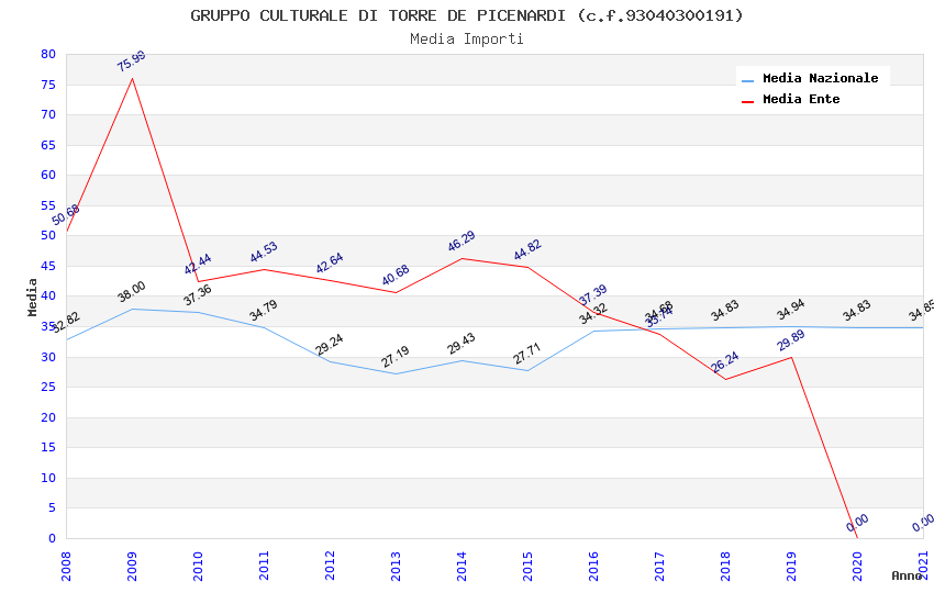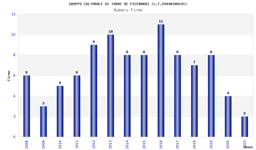 | Anno | Firme | Importi | Media | Naz. | Reg. | Prov. | Comu. |