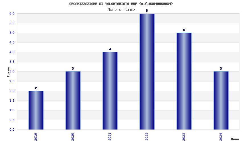 | Anno | Firme | Importi | Media | Naz. | Reg. | Prov. | Comu. |