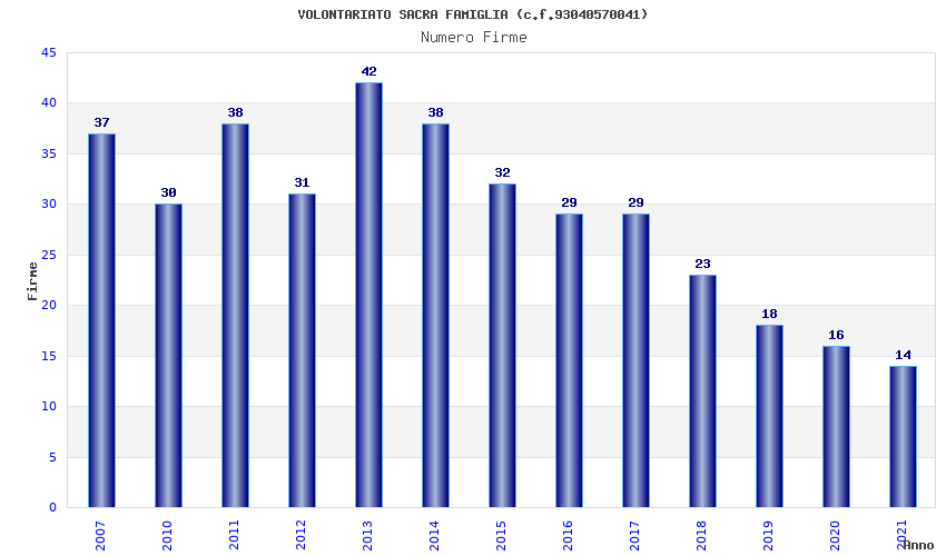 | Anno | Firme | Importi | Media | Naz. | Reg. | Prov. | Comu. |