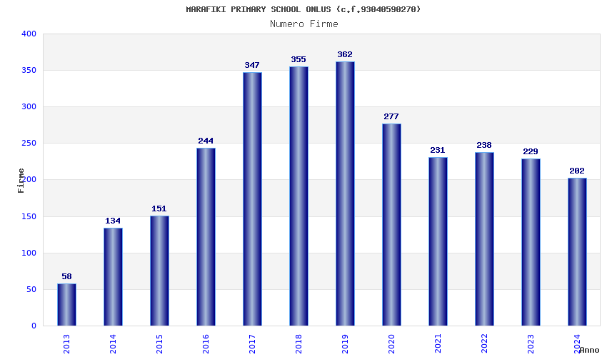 | Anno | Firme | Importi | Media | Naz. | Reg. | Prov. | Comu. |