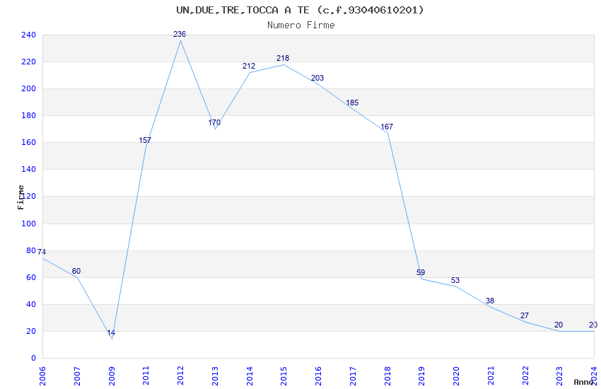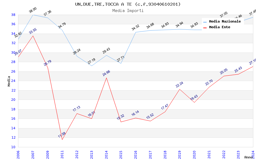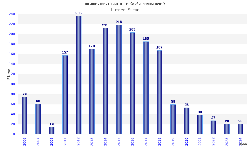 | Anno | Firme | Importi | Media | Naz. | Reg. | Prov. | Comu. |