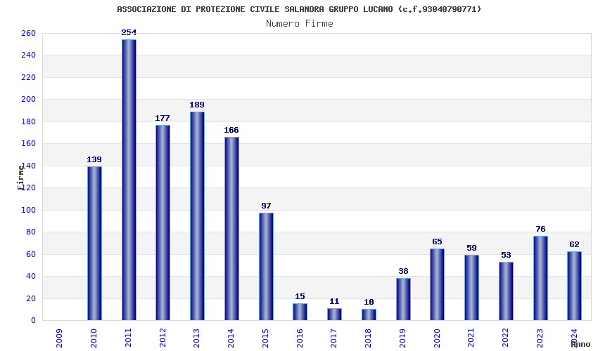 Anno Firme Importi Media Naz. Reg. Prov. Comu.