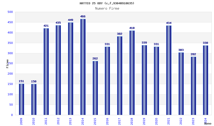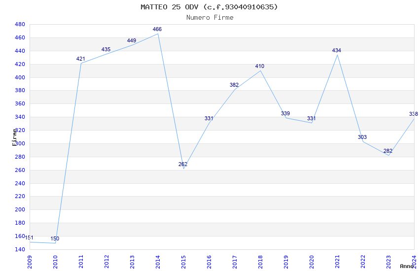 | Anno | Firme | Importi | Media | Naz. | Reg. | Prov. | Comu. |
