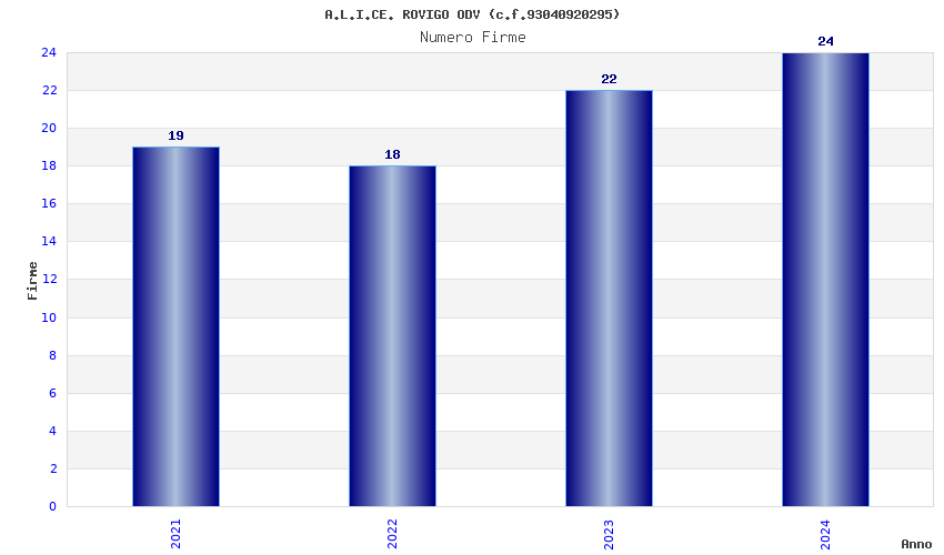 | Anno | Firme | Importi | Media | Naz. | Reg. | Prov. | Comu. |