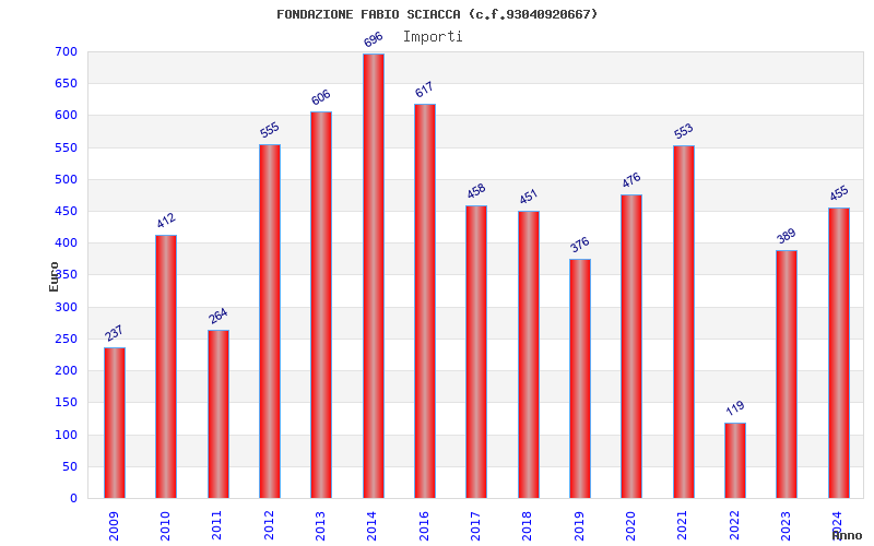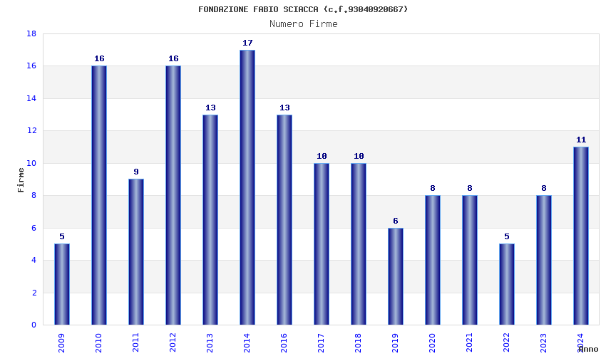 | Anno | Firme | Importi | Media | Naz. | Reg. | Prov. | Comu. |