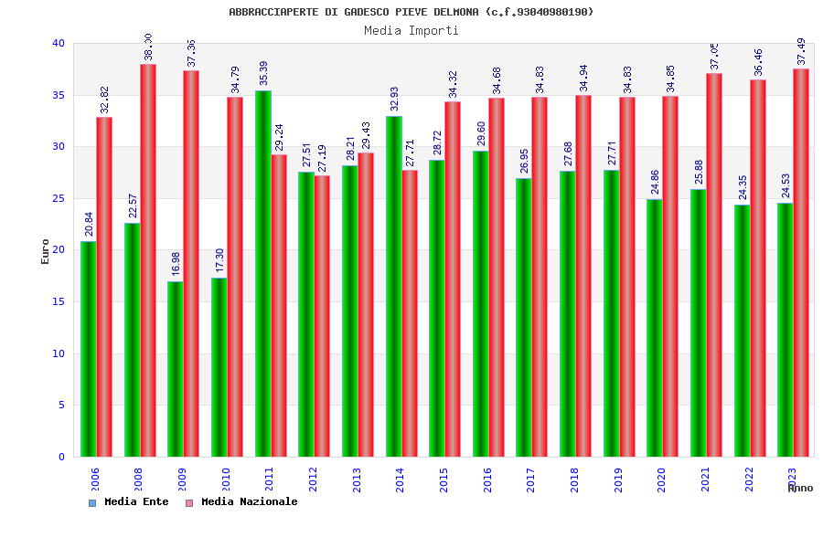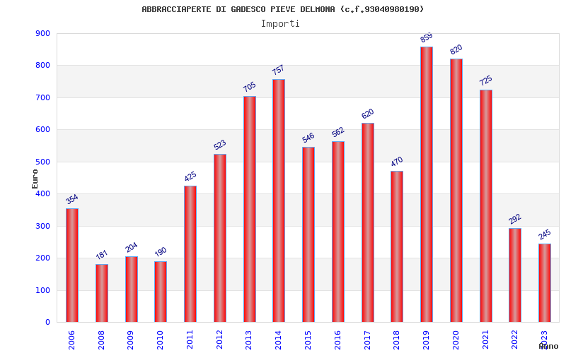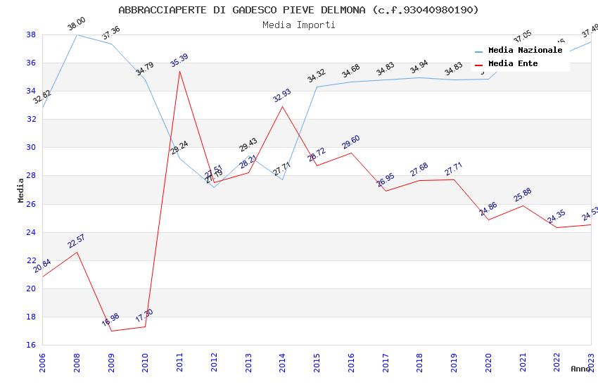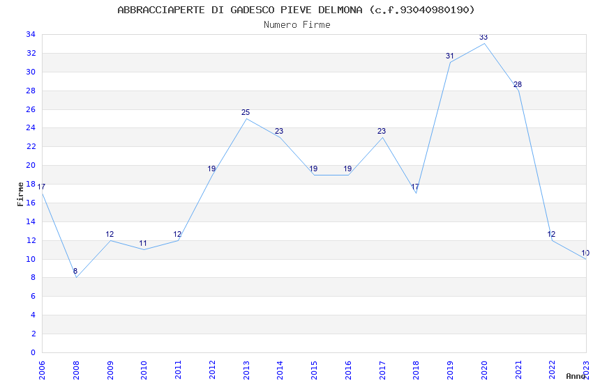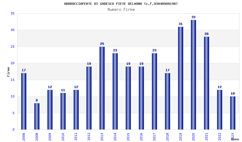 | Anno | Firme | Importi | Media | Naz. | Reg. | Prov. | Comu. |