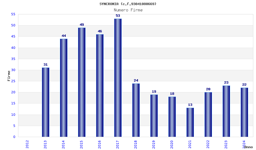 | Anno | Firme | Importi | Media | Naz. | Reg. | Prov. | Comu. |