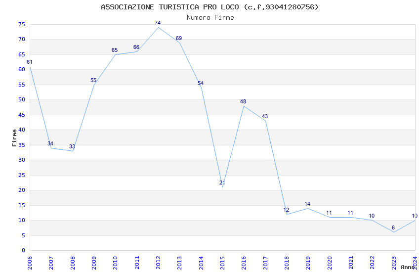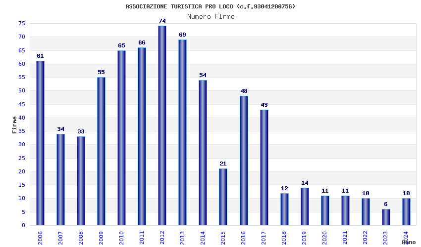 | Anno | Firme | Importi | Media | Naz. | Reg. | Prov. | Comu. |