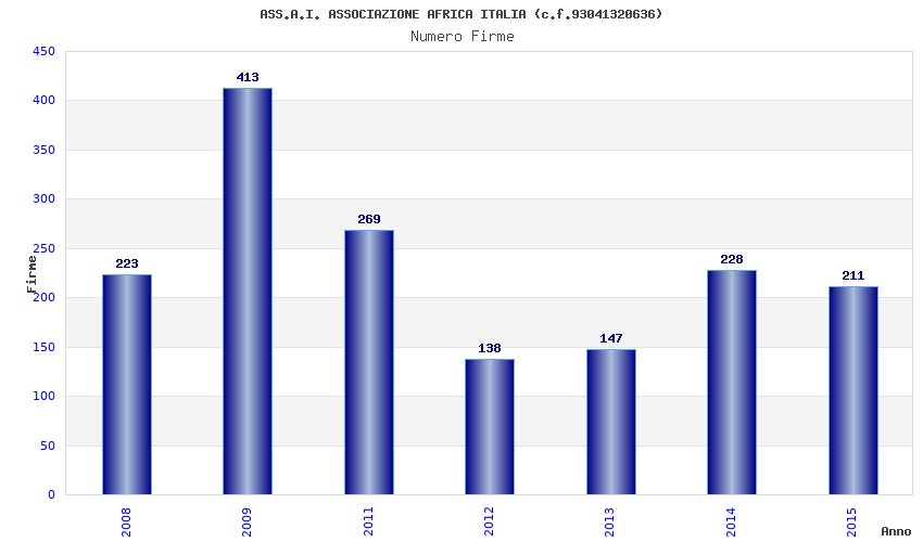 | Anno | Firme | Importi | Media | Naz. | Reg. | Prov. | Comu. |
