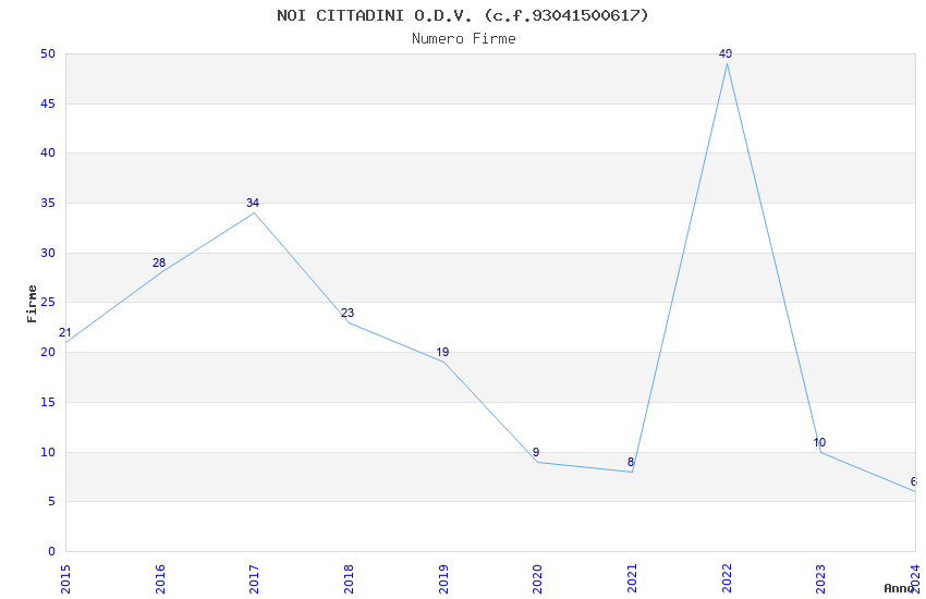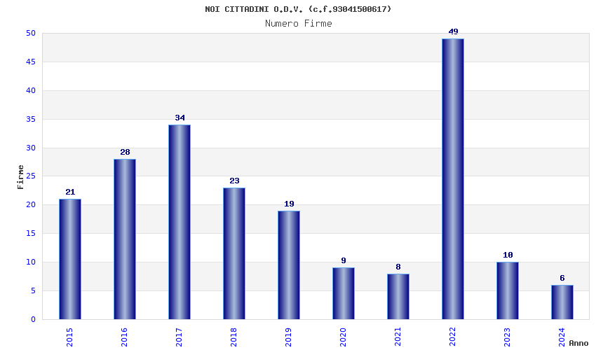 | Anno | Firme | Importi | Media | Naz. | Reg. | Prov. | Comu. |