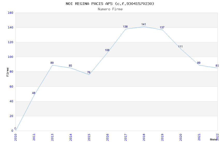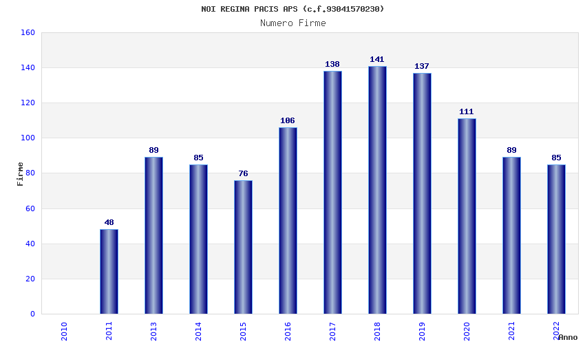 | Anno | Firme | Importi | Media | Naz. | Reg. | Prov. | Comu. |