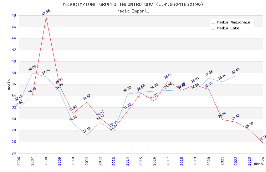 | Anno | Firme | Importi | Media | Naz. | Reg. | Prov. | Comu. |